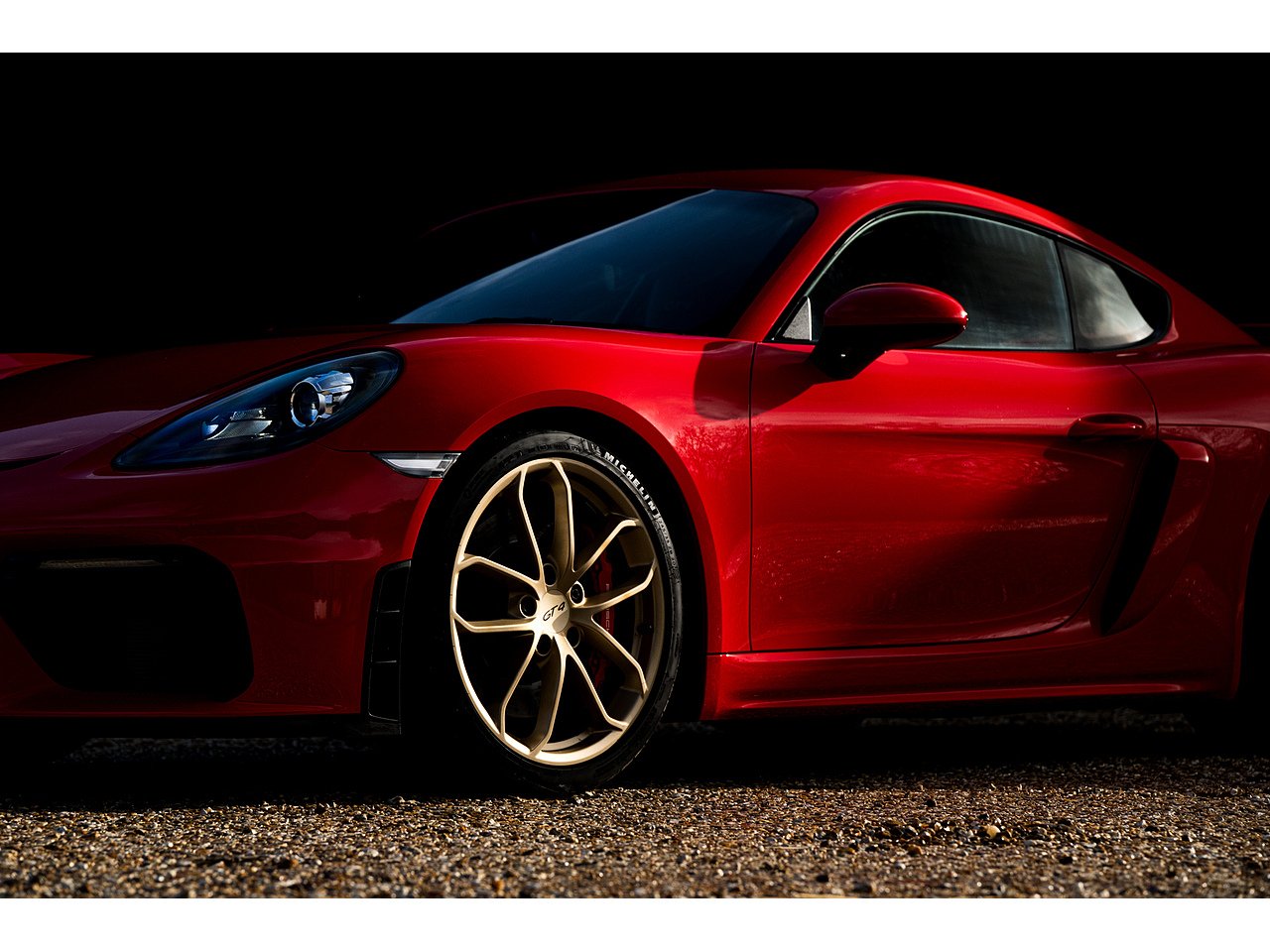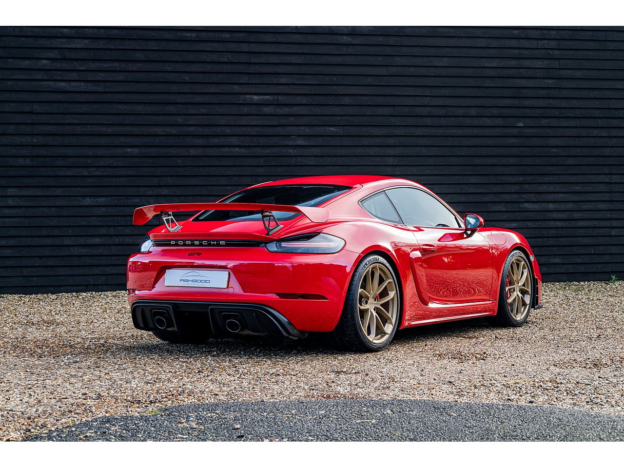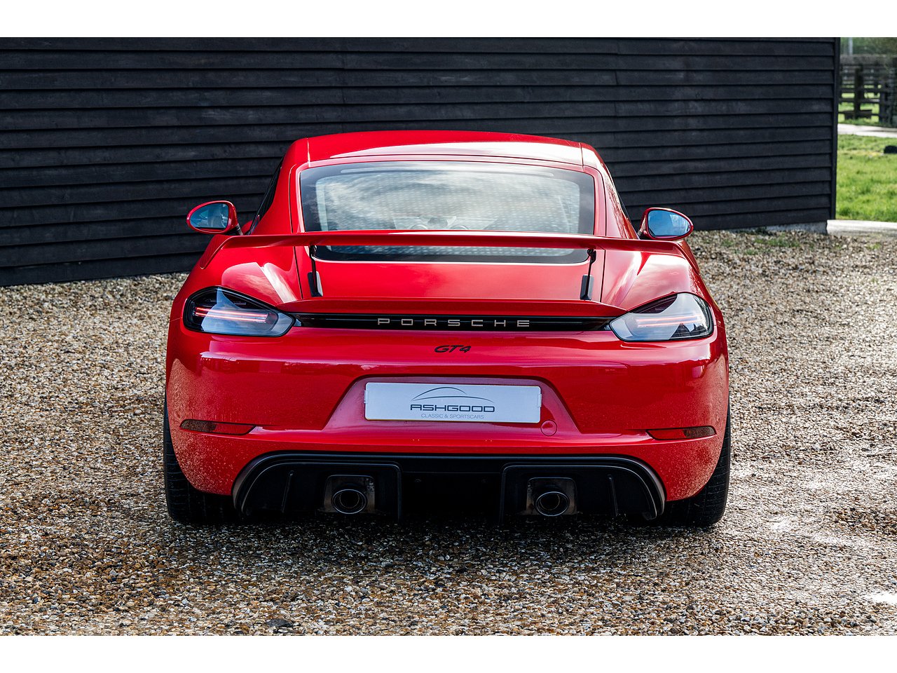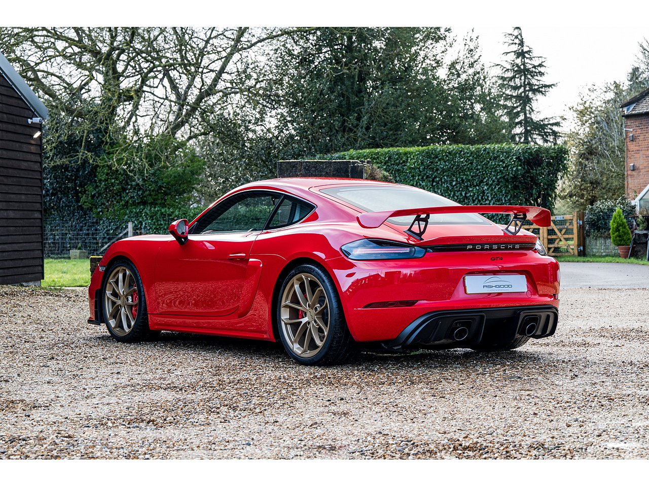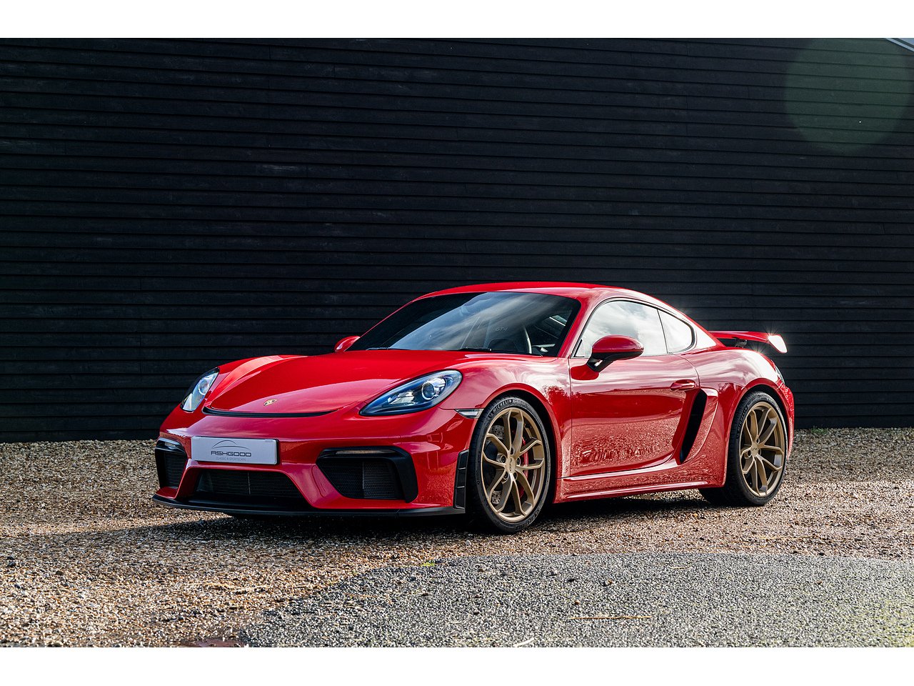 A lovely 718 generation GT4 finished in the iconic Guards Red over Black interior and seldom-seen Satin Aurum alloys along with Sport Chrono package and tghe sports exhaust system finished in black.