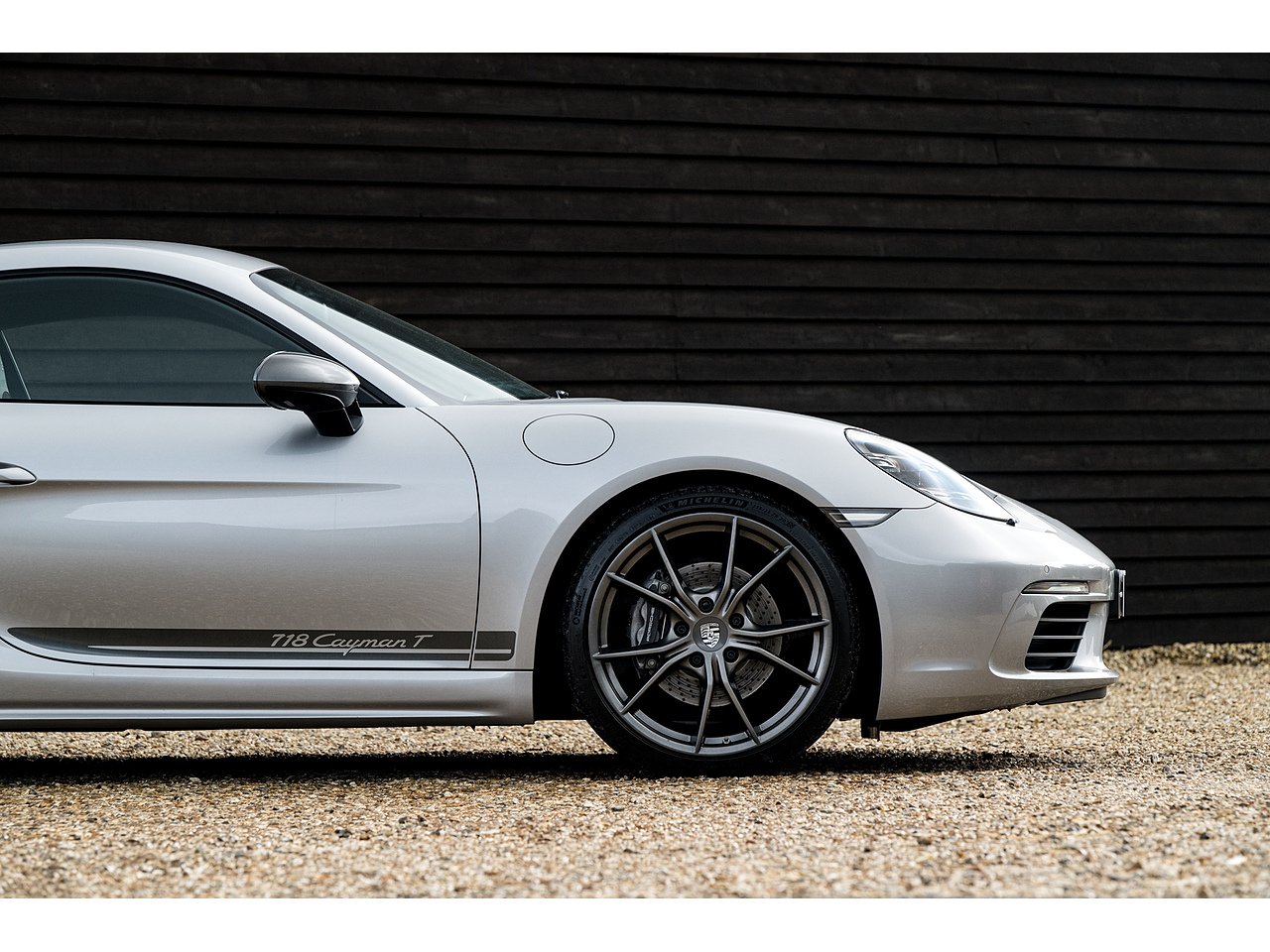 A lovely and rarely seen 718 Cayman T finished in GT Silver Metallic over the fantastic T-specific pinstriped cloth interior and Carrera S alloys.