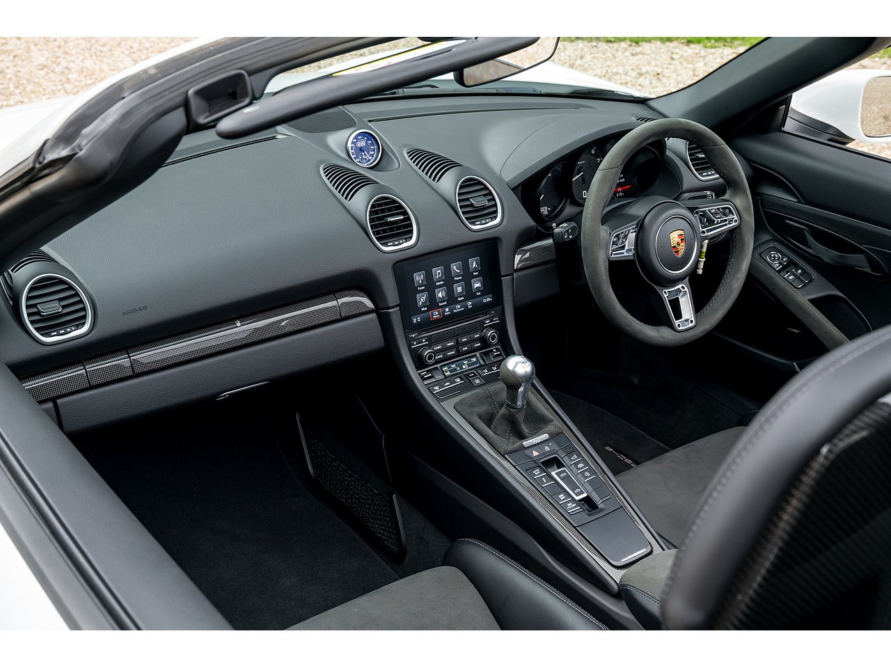 A well specified 718 Spyder finished in Carrara White Gloss over Black Extended Leather Interior and silver alloys. This manual example benefits from its first service having been carried out at a main dealer and a fresh OPC service being supplied upon sale. Purchased new by its previous owner, it shows zero previous keepers on the V5C - extremely rare for these cars as they often have three or more owners at this age. It benefits from a great specification with 918-style fixed carbon fibre bucket seats, Spyder interior package, Carbon interior trim package, PDLS Plus, BOSE Surround Sound, and plenty more besides.