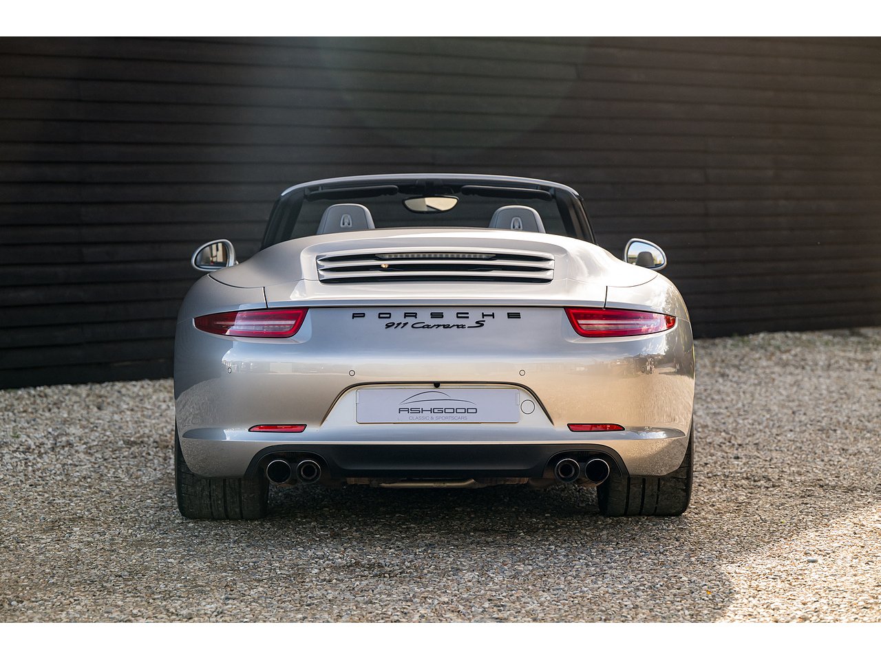 A very nice Porsche 991 Carrera S Cabriolet we have the pleasure of retailing on consignment. Finished in Platinum Silver Metallic over Black/Agate Grey two-tone leather interior, Black roof, and 20" Black Carrera S alloys. This lovely low-mile car has only two former keepers on the V5C and a comprehensive record of maintenace almost entriley by Porsche Main Dealers, lastly a well renowned specialist. In addition to the already generous specification this car recieved when new, the seller has retro-fitted Sport Chrono package to the car as well as Apple CarPlay, reversing camera, and ZunnSport grilles to protect the front condensers.
