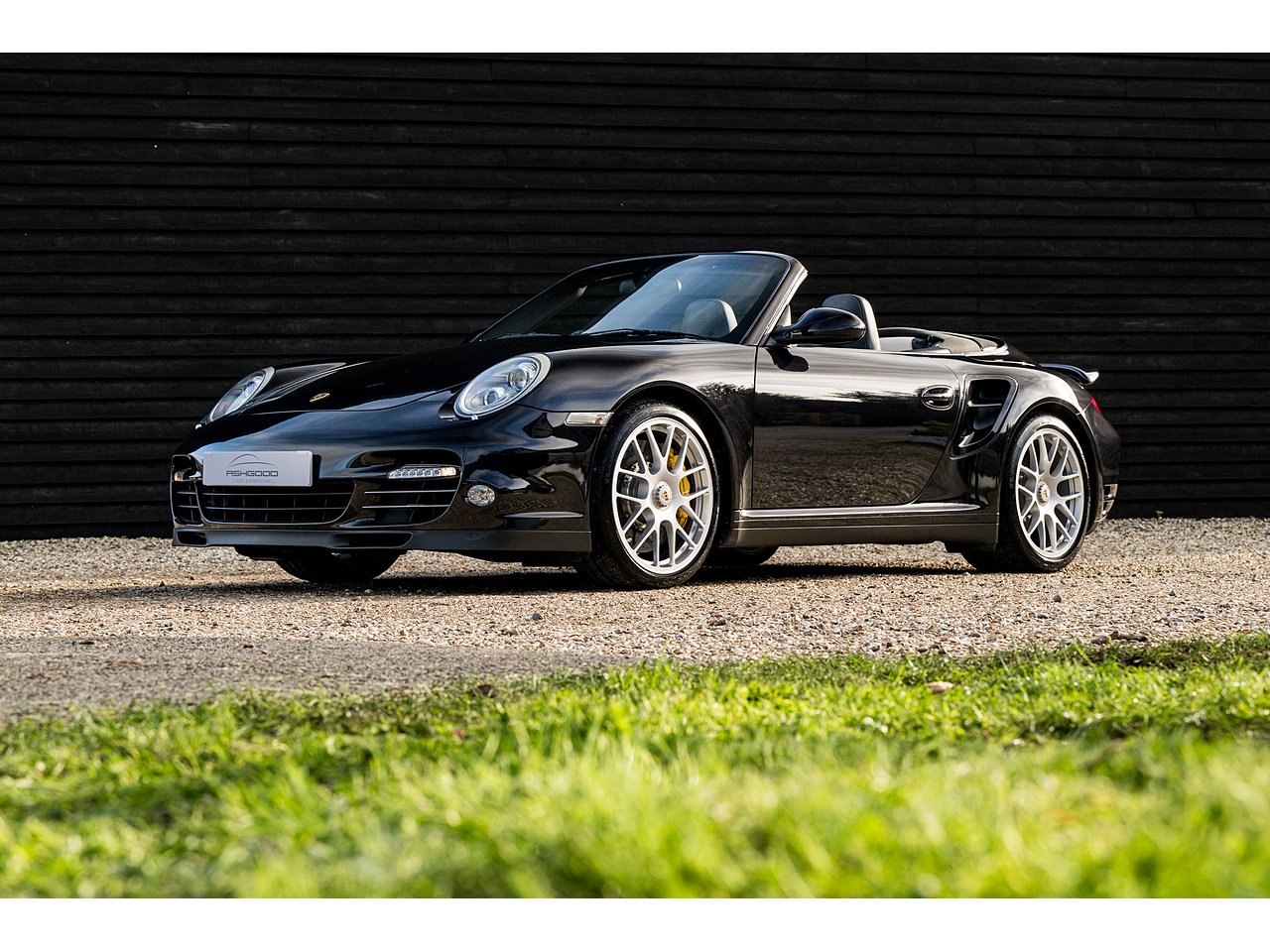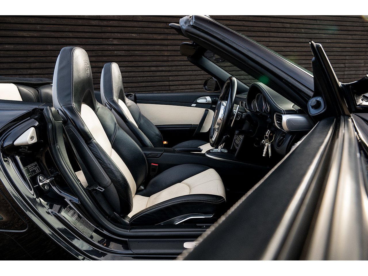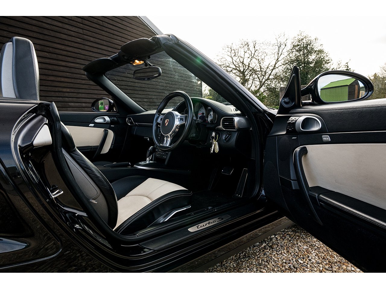 A stunning 997 Turbo S Cabriolet finished in Basalt Black with two tone black/cream leather interior.