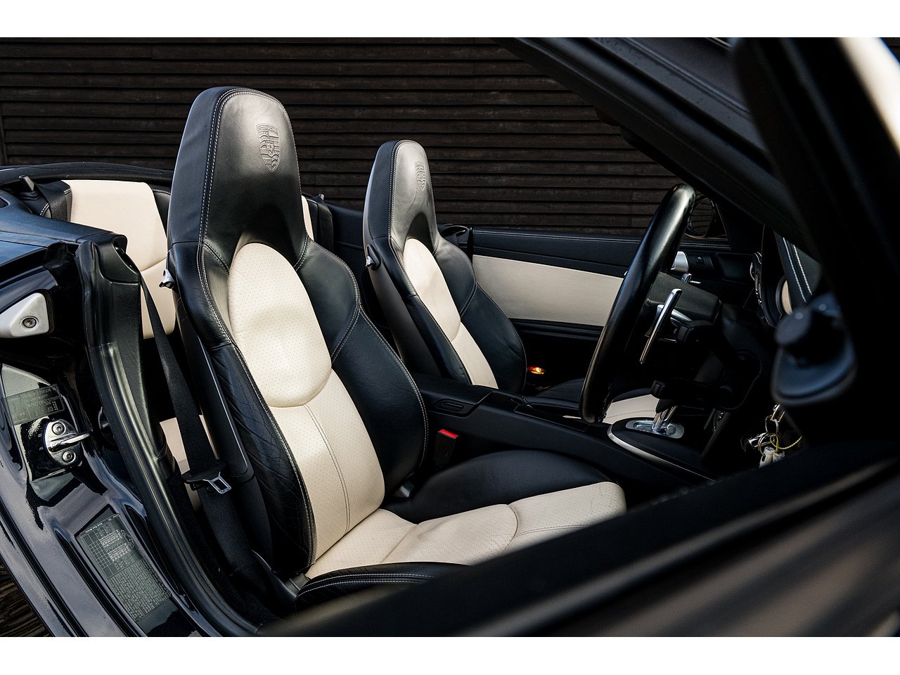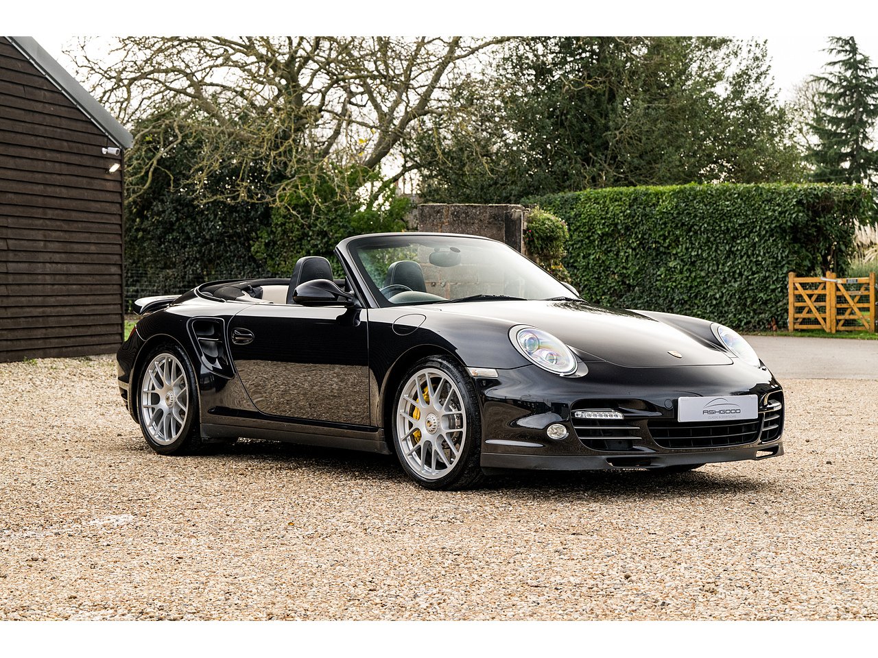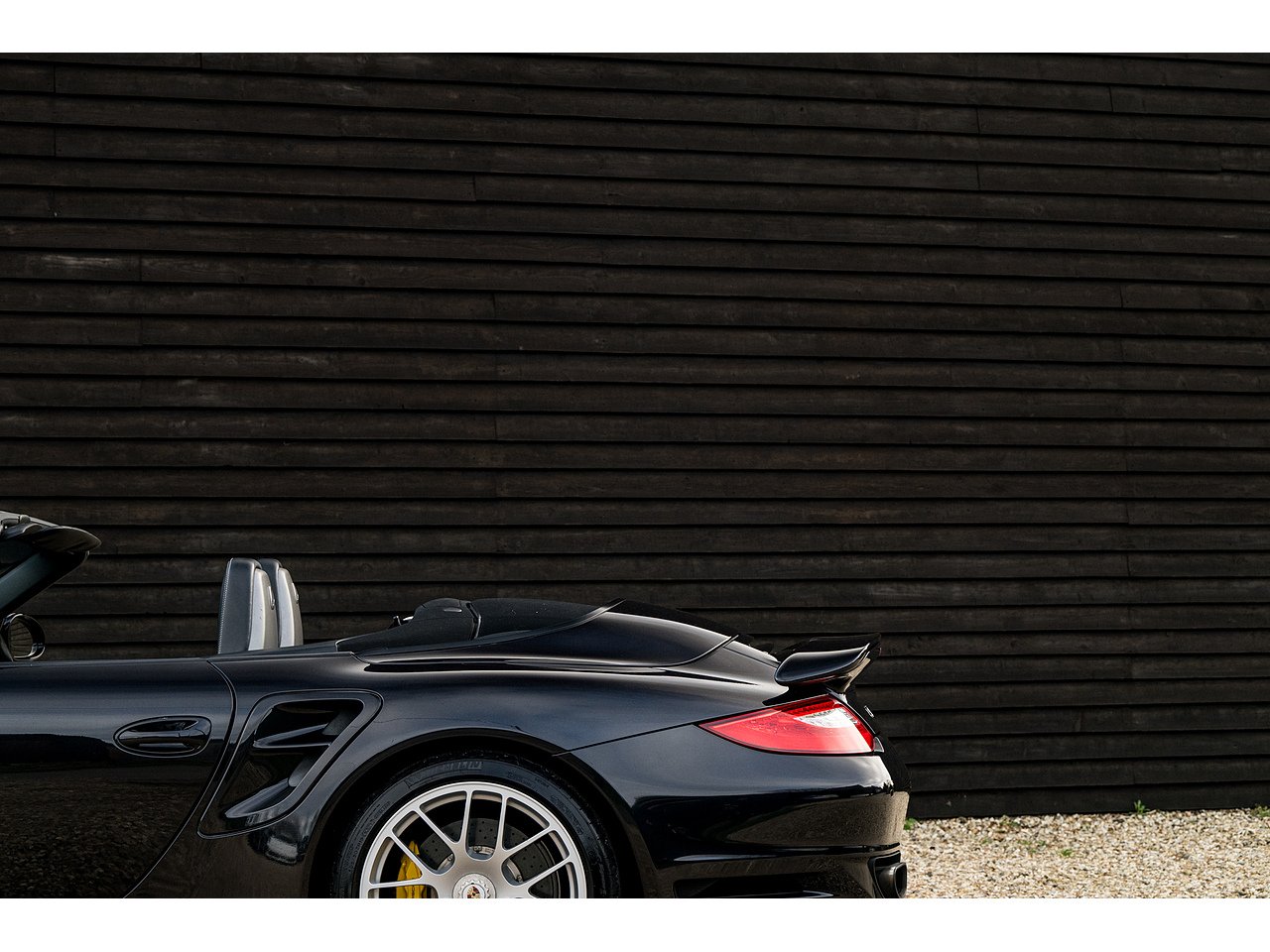A stunning 997 Turbo S Cabriolet finished in Basalt Black with two tone black/cream leather interior.