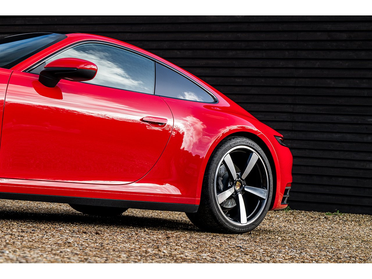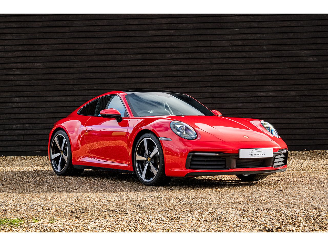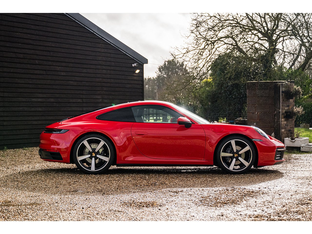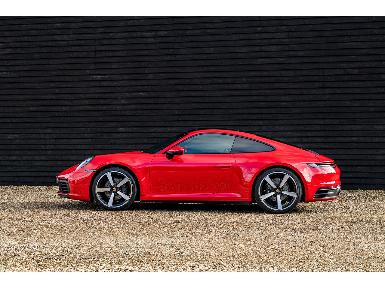 A beautiful Guards Red Porsche 992 Carrera 4 with a good level of options from factory, including glass roof, Sports Exhaust and BOSE.