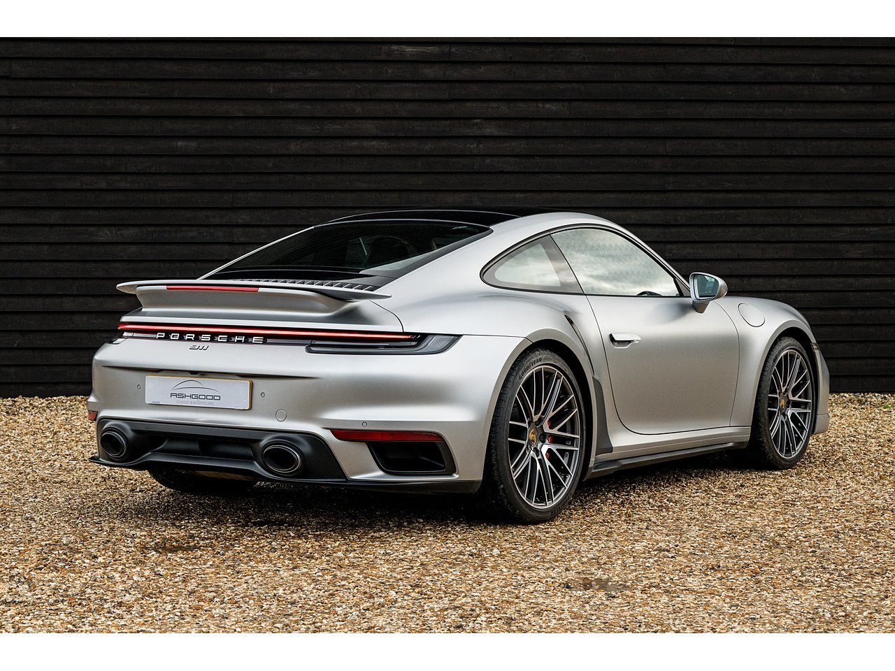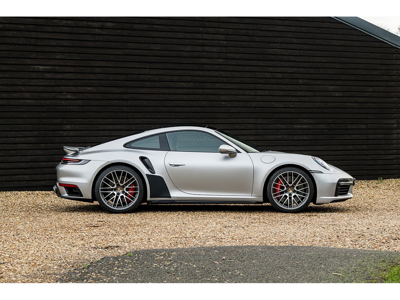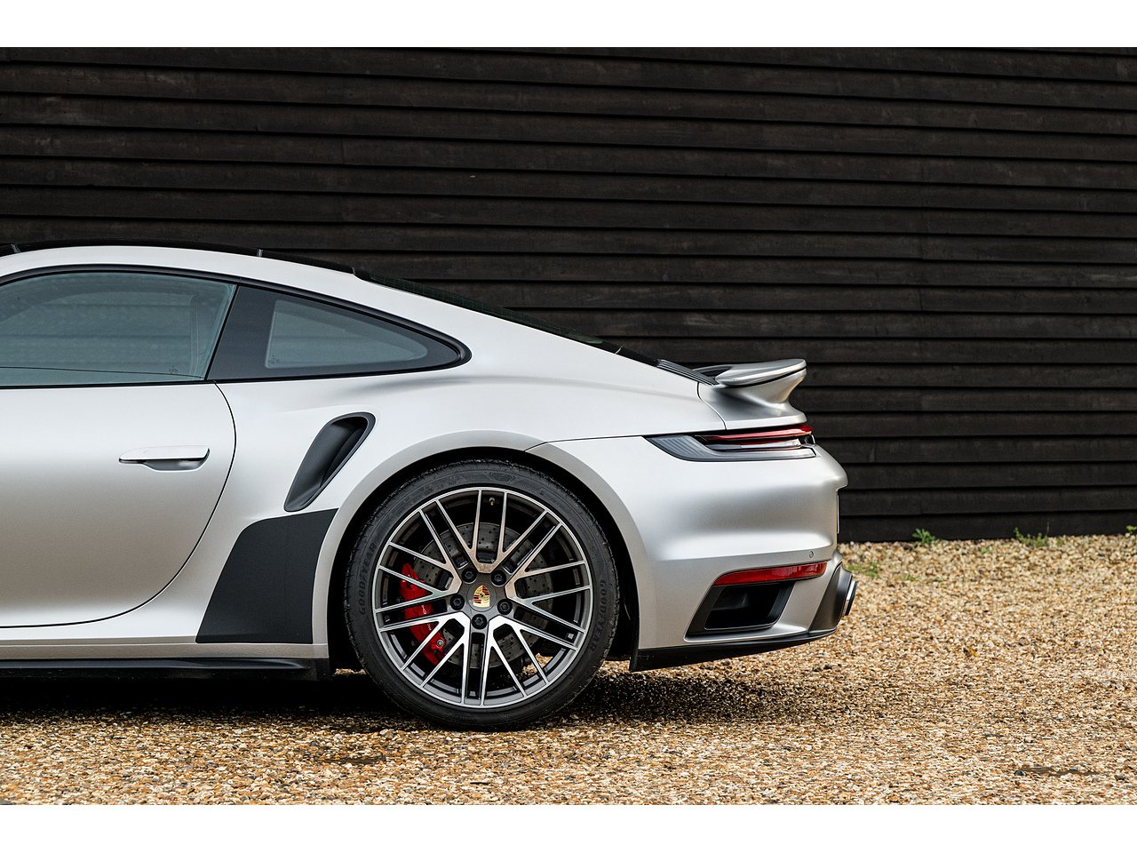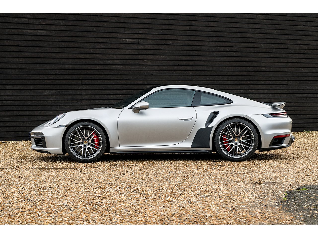 A stunning 992 Turbo Coupe finished in GT Silver Metallic over Club Brown Extended Leather interior and stagard diamond cut turbo alloys. This lovely example benefits from a full main dealer history, not due until mid-2027, and a satin PPF package which adds a stylish and punchy edge.