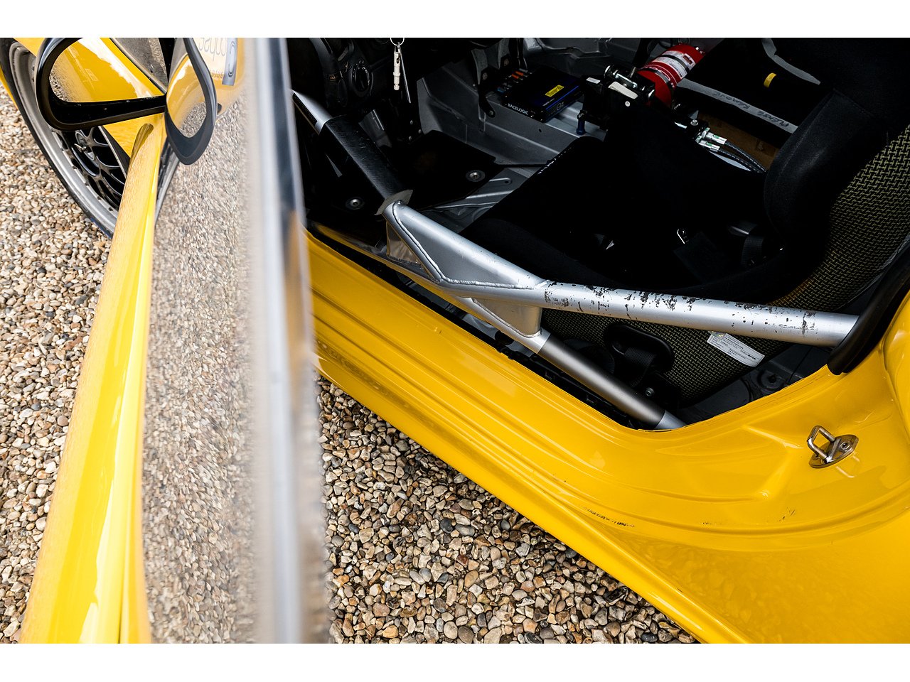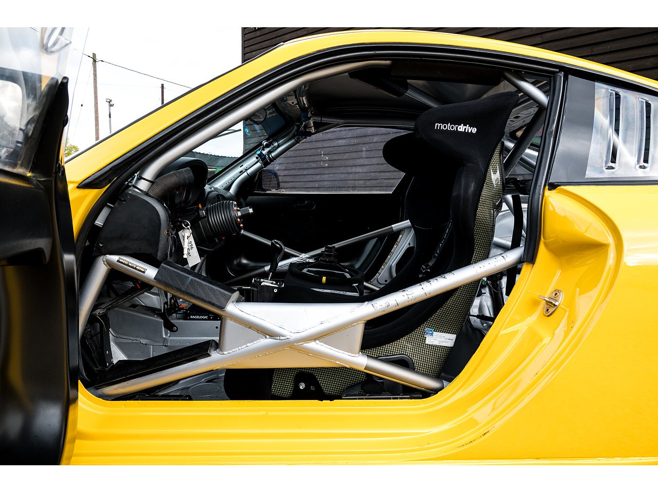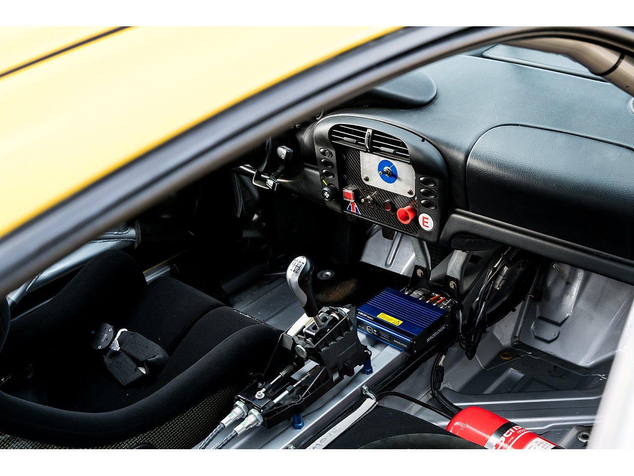 The car was previously restored and repainted in gunmetal grey, a colour still visible in the interior. However, the original Speed Yellow paint remains visible on the roll cage surrounding the factory stickers. We’ve recently had the exterior professionally refinished in its correct Speed Yellow to bring it back to its intended appearance.