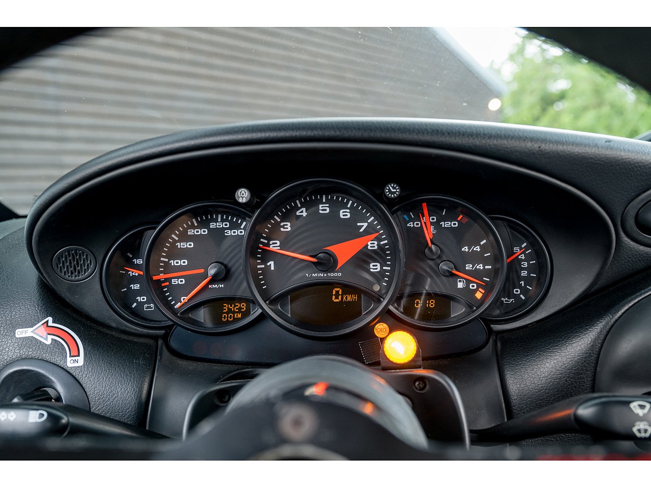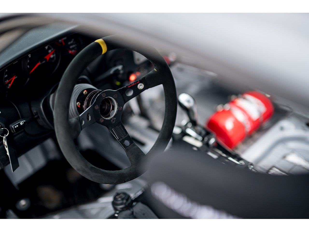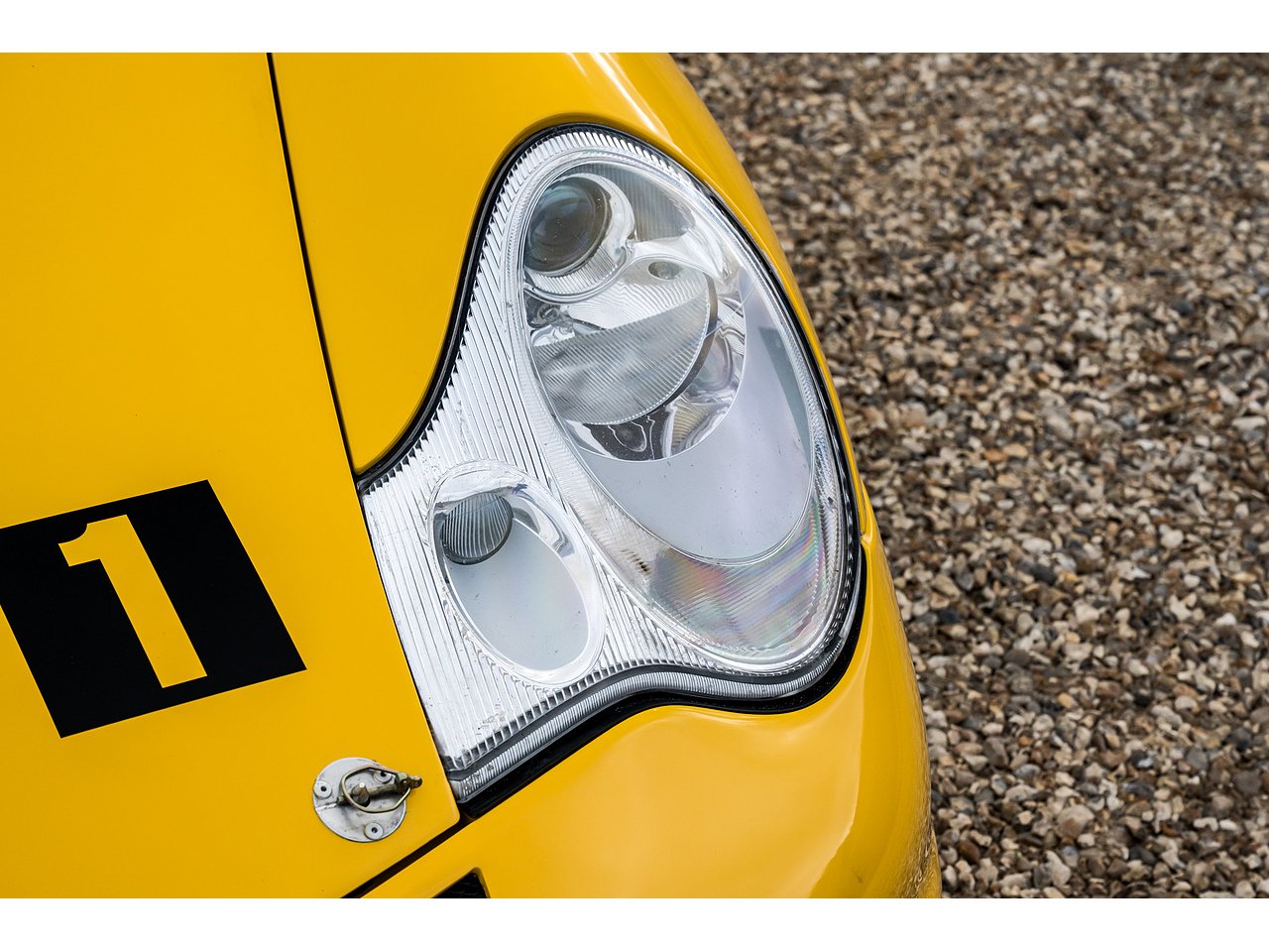 The car was previously restored and repainted in gunmetal grey, a colour still visible in the interior. However, the original Speed Yellow paint remains visible on the roll cage surrounding the factory stickers. We’ve recently had the exterior professionally refinished in its correct Speed Yellow to bring it back to its intended appearance.