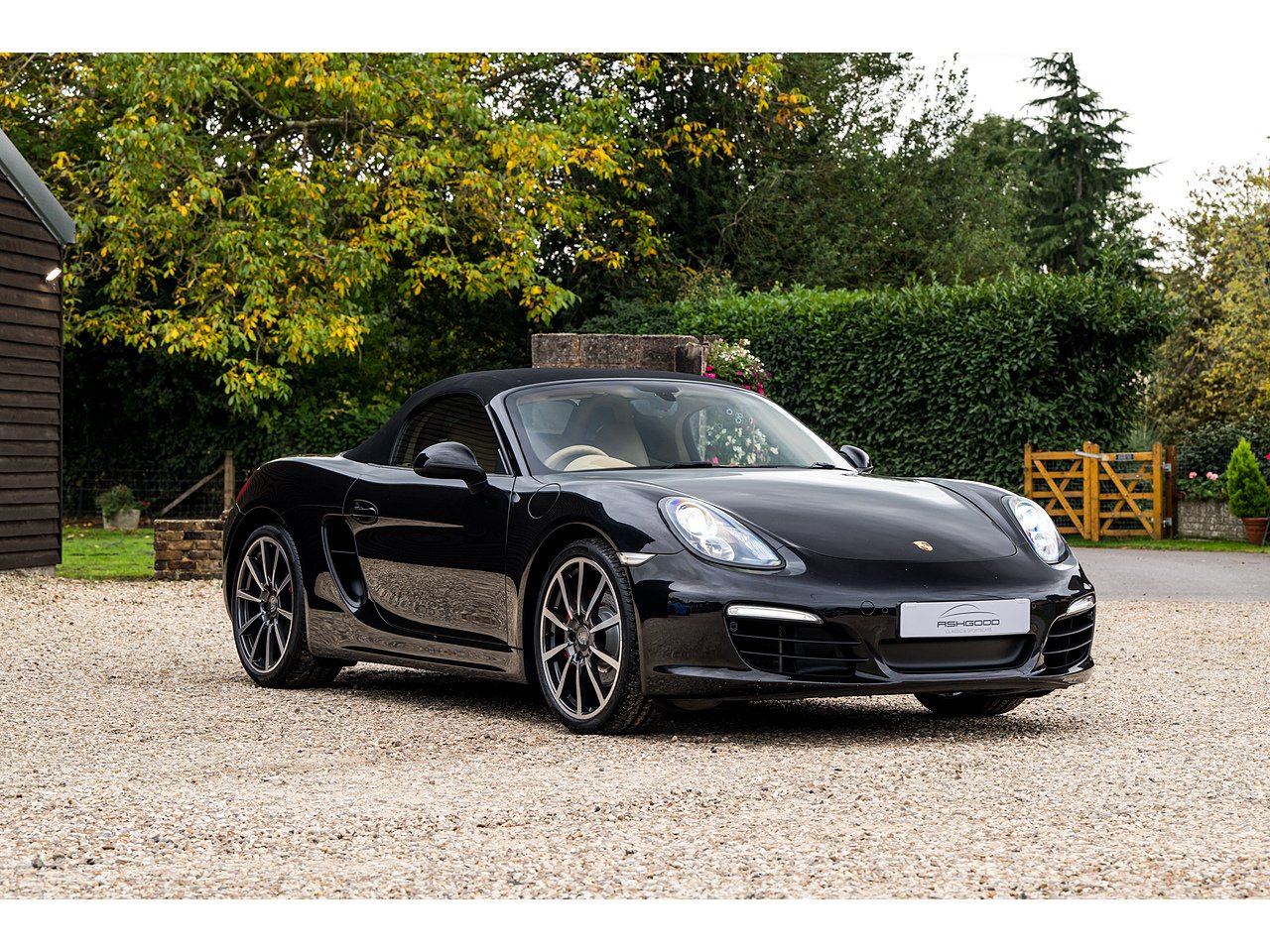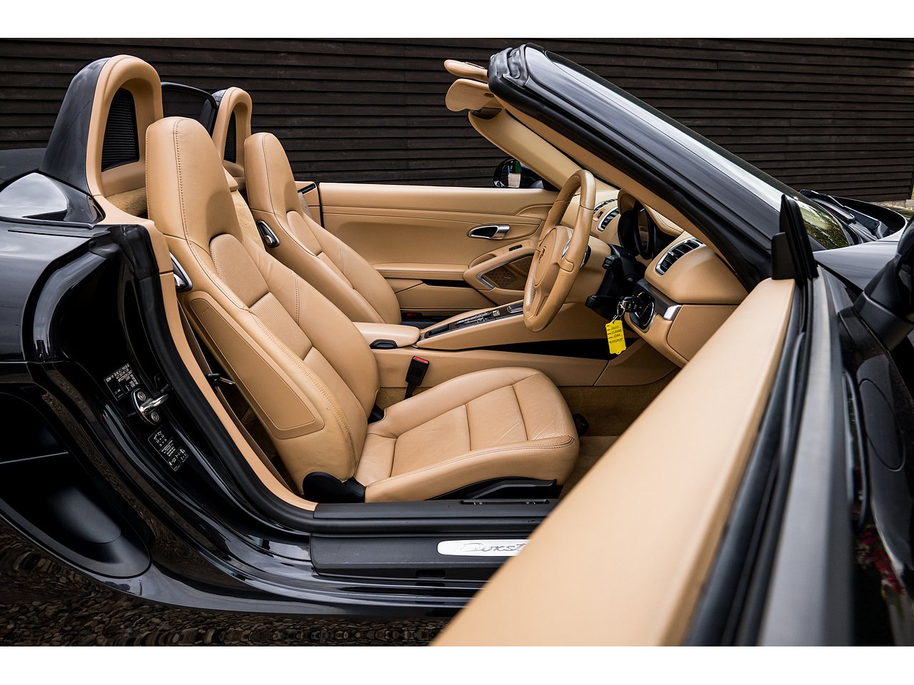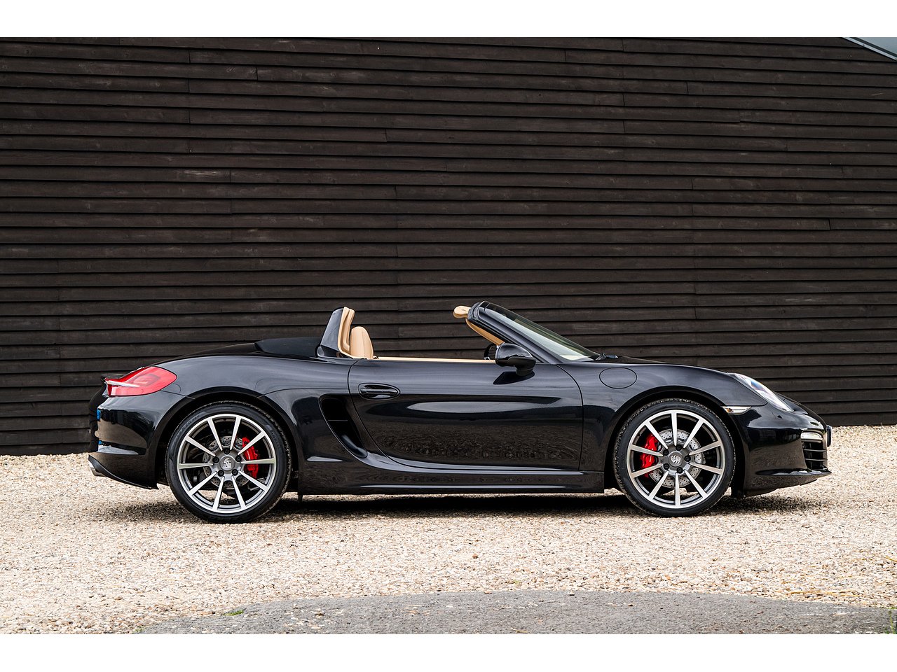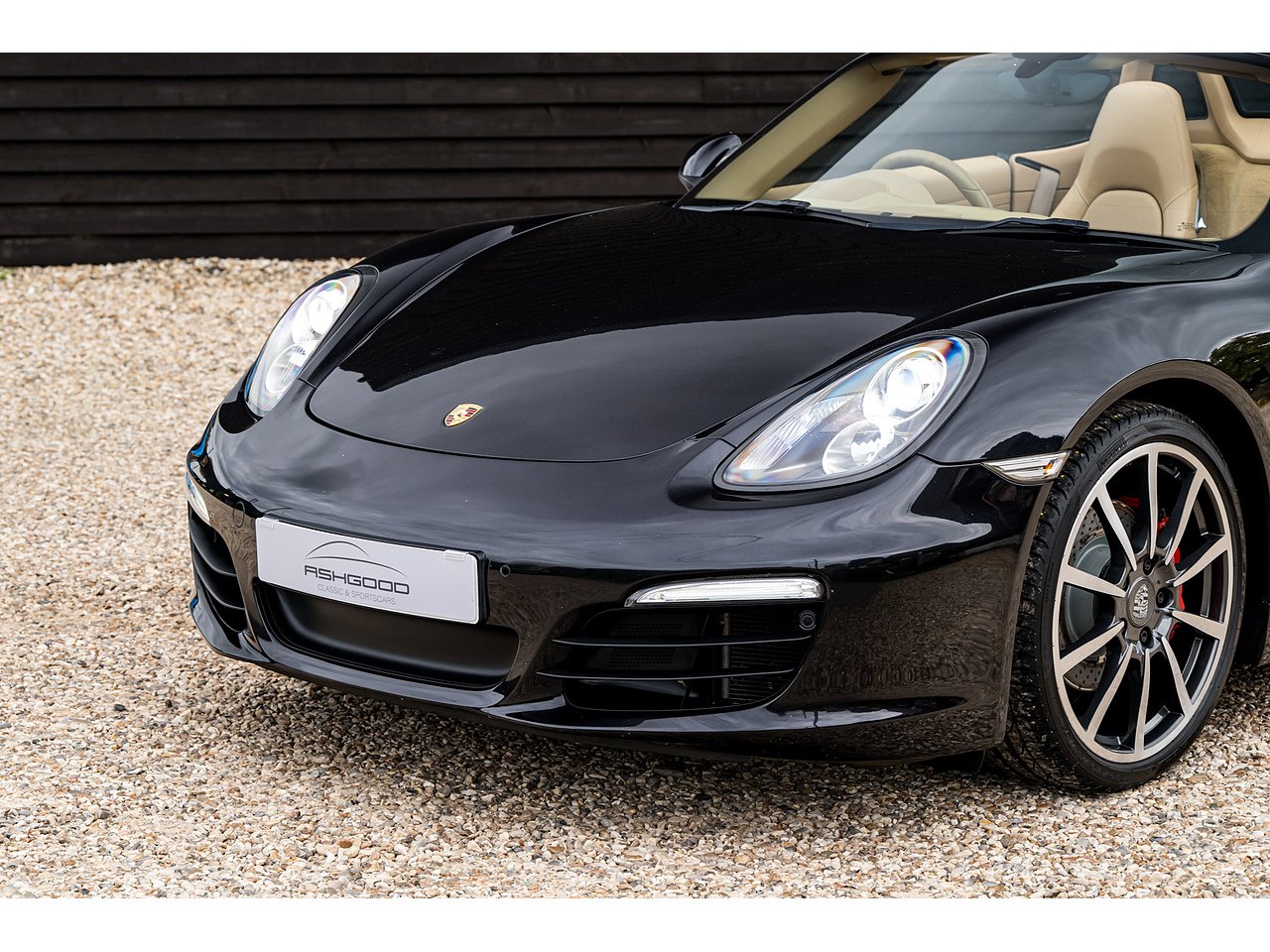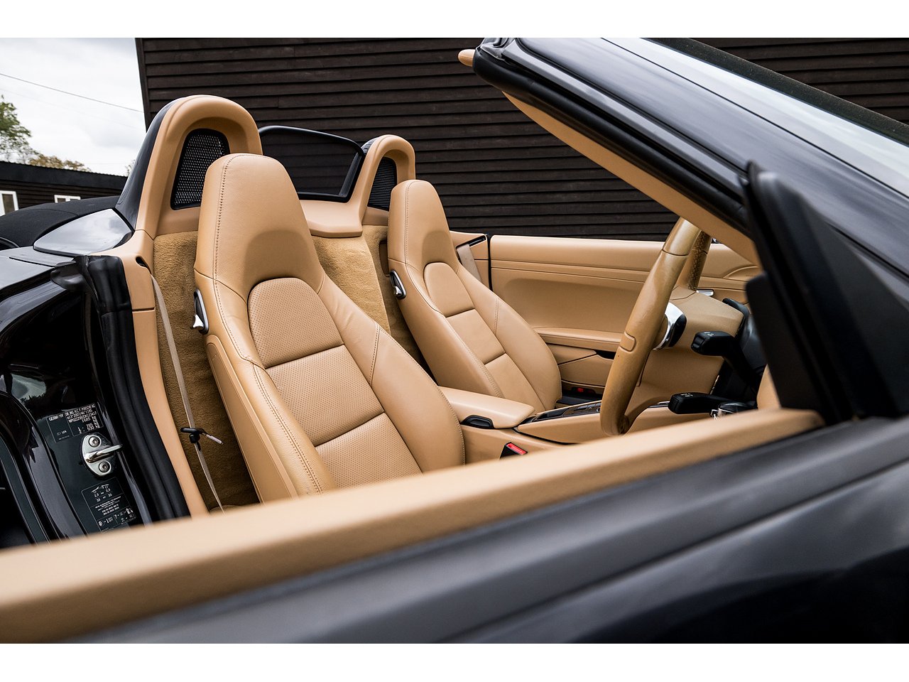 981 Boxster S finished in Basalt Black with Extended tan leather interior, black fabric roof, and 20" Carrera Classic alloys. With a nice level of options and good record of maintenance, this tidy, stylish Boxster is a great piece of kit to own. These six cylinder cars are becoming modern classics, and provide a fantastic solution for those looking for a capable, well balanced sports car as well as a usable daily driver for the commute into the office as equipped with Xenon lighting, BOSE Sound Pack, Heated seats, and sports exhaust, it makes a great sports car for any occasion.