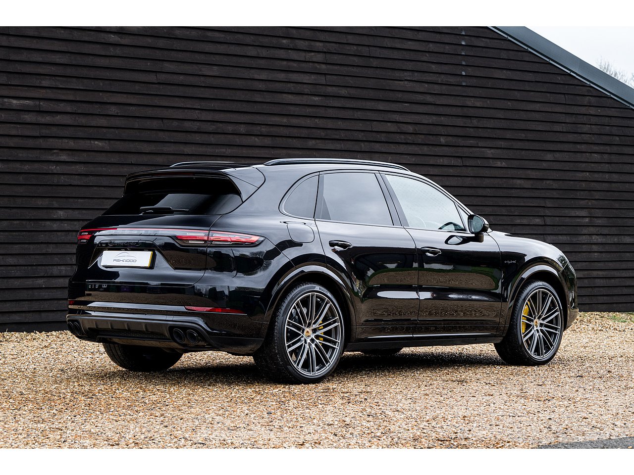 A Cayenne Turbo S E-Hybrid, finished in Jet Black Metallic over Black Extended Leather and Diamond Cut 22" Turbo Design Alloys. Full spec and service history to follow but available upon request.